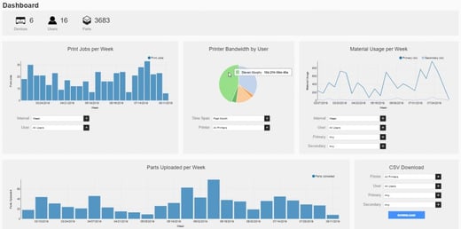 With a versatile cloud based software, there many metrics tracked for your convenience. The Eiger Dashboard allows for both management and users to track printer statistics such author and material usage. Not only does the portal include integrated graphics, but the data is also available as a CSV.