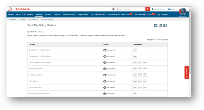 Provided by SOLIDWORKS, MySolidworks contains many training paths (each training path is composed of many individual topic videos) targeting a specific workflow of the software. Use these to your advantage to learn about areas of the software that is relevant to your profession. I would suggest starting with the “Part Modeling Basics” learning path.