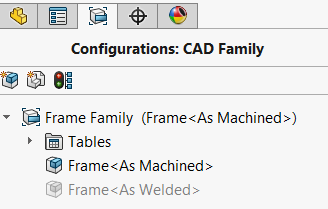 For weldments, if the "As Machined" configuration represents the final product, use that as the Physical Product configuration and save the "As Welded" configuration as a Representation. If both need to be managed separately, convert the "As Welded" configuration to a Physical Product configuration so both are represented individually on the 3DEXPERIENCE platform.